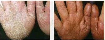 为手掌的皮肤癣菌感染。男女老幼均可染病,以成年人多见。起病于手掌某一部位,缓慢扩大,最终累及大部或全部甚至两侧手掌。症状为红斑、水疱、鳞屑和角化增厚。