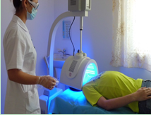使用复合光疗系统,作用在病灶处,可以灭菌抗炎,修复受损皮肤,提高组织微循环和免疫力,清除色素沉着。