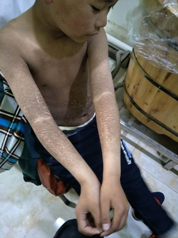 嘉嘉是由父亲领着来治病的,董姓一家是新都的,父亲在龙泉驿某单位打工,嘉嘉的父亲说,“孩子是从5岁发病的,10来岁的时候最严重,治疗过,都是吃中药,外用软膏擦一擦,没用的。”
